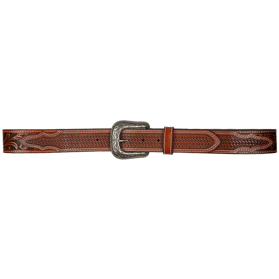 AndWest Men’s Veg Tooled With Basketweave Billets Belt
