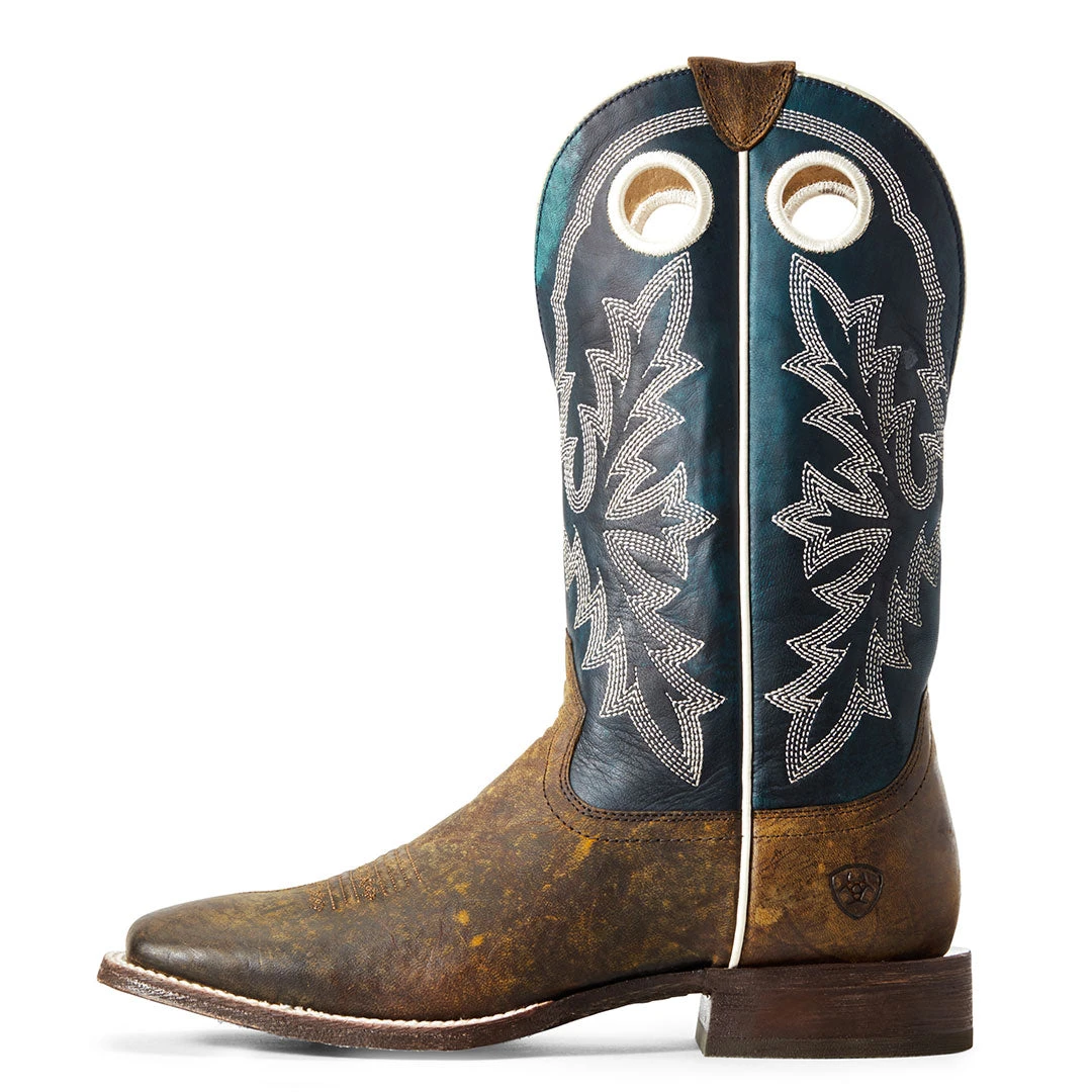 Beyond comfortable, this men’s Ariat boot features an insole covered in a contoured massage surface that soothes feet the moment you step inside. Scratched and scoured leather outsoles give it the look of a well-loved boot.Â