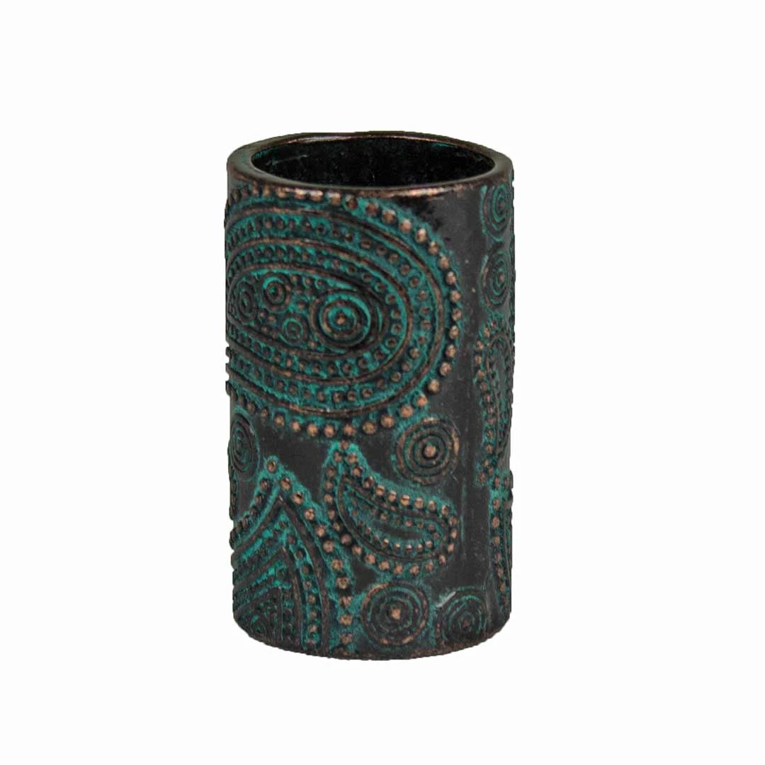 Add a finishing touch to any scarf with this cylinder copper patina scarf slide featuring a paisley pattern from Austin Accent.