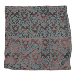 This beautiful wild rag is done in a two-tone filigree design. The back of the square scarf has reversed the colors, giving it an iridescent look when worn.