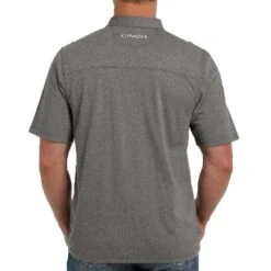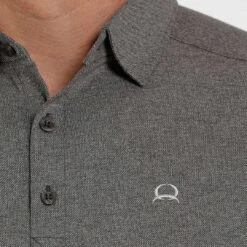 Transition seamlessly from one weekend activity to the next wearing a heathered gray cotton-poly polo crafted by Cinch. Tucked in or out, this must-have polo makes the perfect match for blue jeans or khakis with its classic fit, logo embroidery and gray buttons.