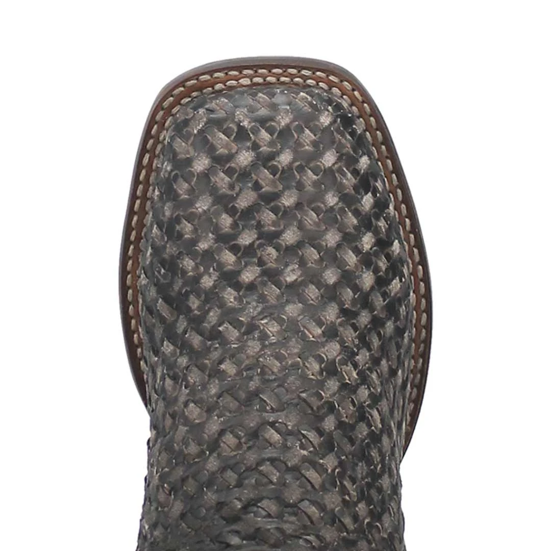 The Stanley Leather boot is sleek and stylish with braided texture details. Removable Soft Strike Comfort Orthotic for all day comfort. Features a broad square toe and stockman heel. Lightweight Cavvy rubber outsole.