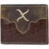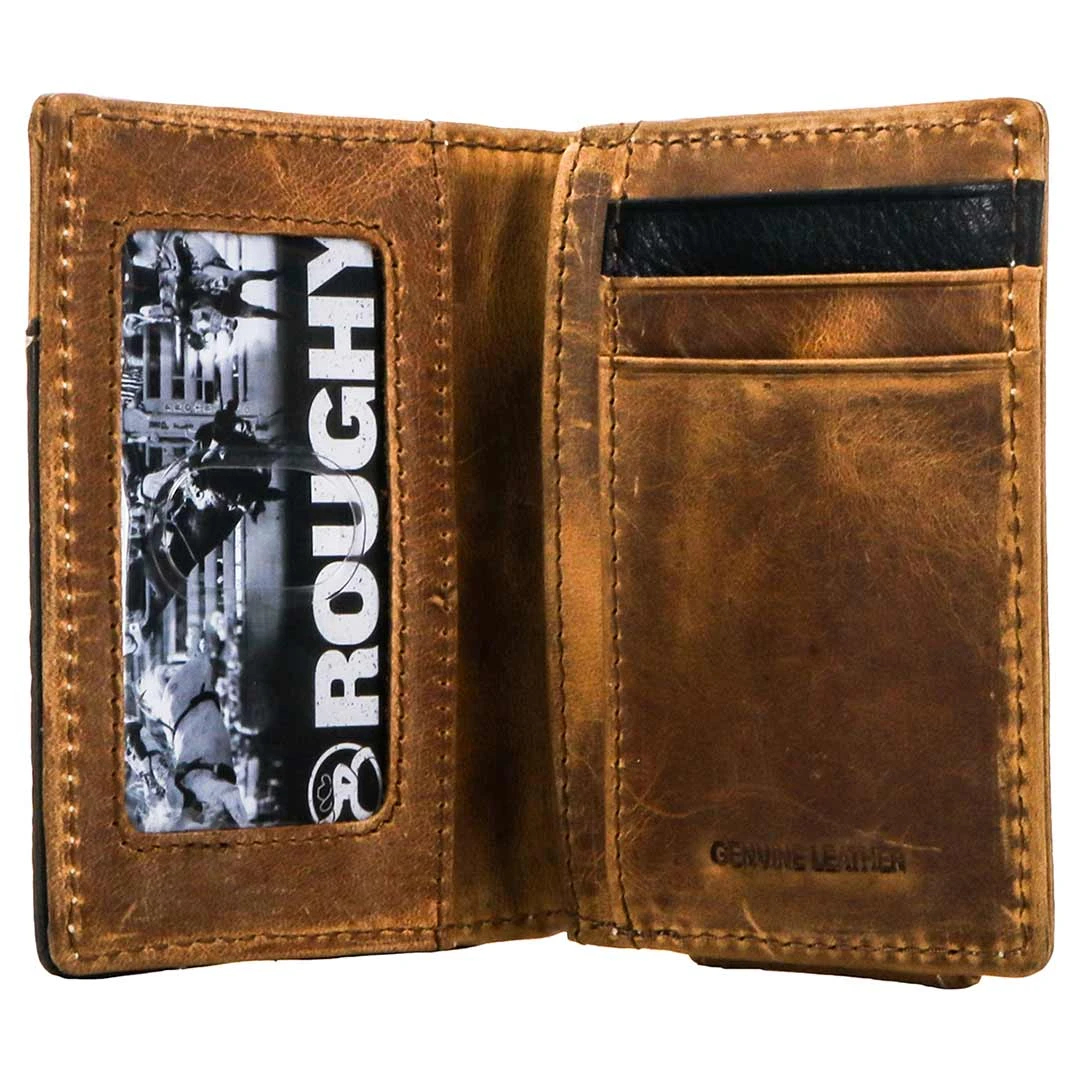 This Roughy money clip wallet features diamond patchwork, detailed with hair on leather inlay and white embroidered rough logo and includes custom hooey brands woven logo liner.
