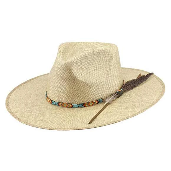 This Justin Hat has a pinched front crown and comes with a multi-coloured arrow beaded band with a Justin logo pin on the side of it.