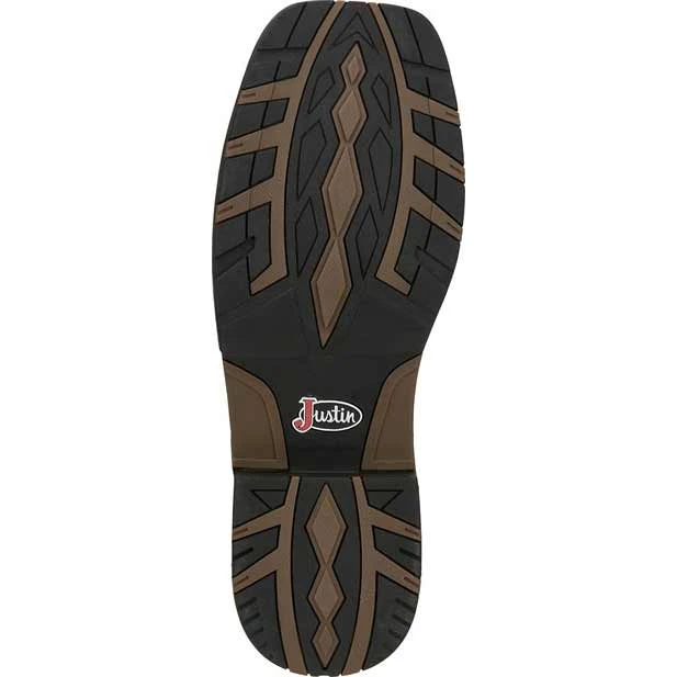 Justin’s Fireman is an 11″ tall Men’s George Strait cowboy boot with some western grit. The distressed chocolate brown waterproof leather exterior comes in handy when your job calls for working outside in the rain, mud, and muck. The durable leather shield guarantees your feet will stay dry no matter the conditions. The bright yellow and cream stitching has an inventive design and the square toe allows for a relaxed fit. This boot features a double stitch welt for added reliability and the J-Flex Flexible Comfort System® insole with removable orthotic inserts provides maximum cushion and support for lasting comfort. Its rubber outsole is oil-resisting for ultimate traction on various surfaces and grip in the stirrup.