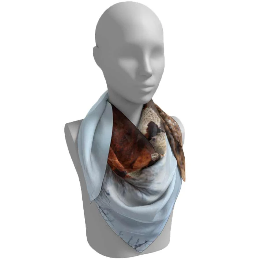 For life on the ranch, choose Ranch Life Wild Rags. All their scarves are 100%, 12 mm silk printed with a digital image & a rolled hem along all four edges.