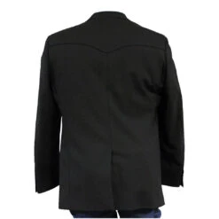 From Rancherโs Dallas Collection, this men’s black sport coat is a staple for any wardrobe. It features western front and back yokes and has decorative cuff buttons. Whether pairing with jeans or slacks, you’ll love the suave western style of this sport coat.