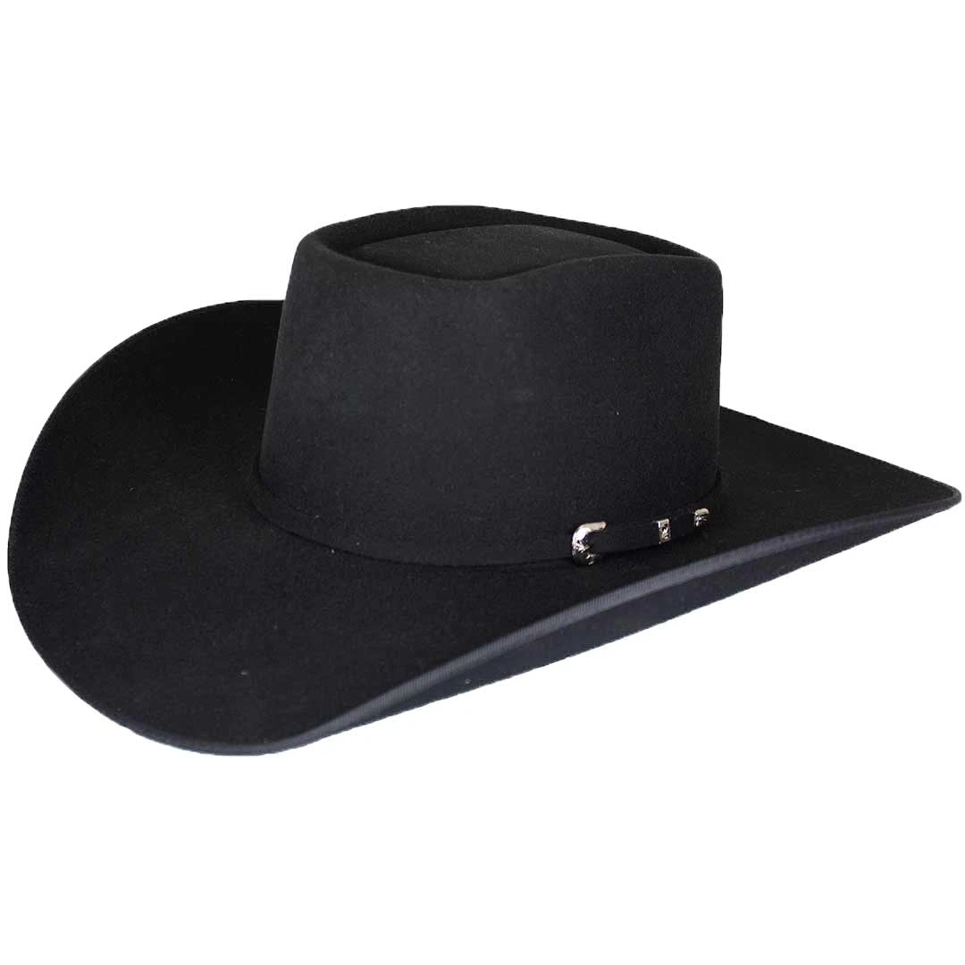 From Serratelli Hat Co., the Cody is a 4X black fur felt cowboy hat with a bound edge. It features a simple felt hat band with a buckle design.