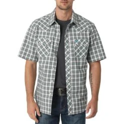 Wrangler Men’s Retro Short Sleeve Plaid Snap Shirt