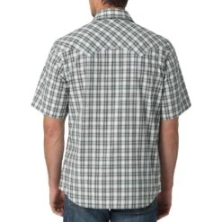 Hold onto quality when you put away those winter layers. This Wrangler Retro premium plaid short sleeve features a tailored fit, Western yokes, and attractive stitching for that something extra. Made with 100% cotton poplin to retain its shape even with daily wear.