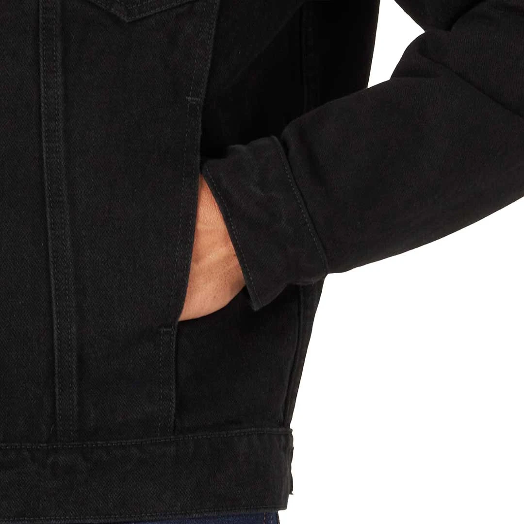 The Men’s Wrangler Retro Premium Unlined Western Jacket is just the jacket you have been waiting for. It’s enhanced black wash denim was specifically crafted to have superior stretch recovery, meaning it will hold shape throughout the day. Look for classic Wrangler details like rope logo shanks and “w” stitching at the pockets. Jacket features two side pockets, spread collar and black stitching. A staple for every man’s wardrobe.