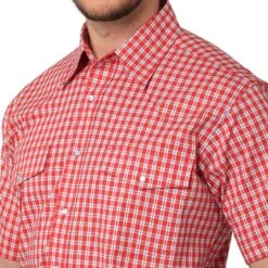 Wrangler Men’s Wrinkle Resist Short Sleeve Plaid Snap Shirt