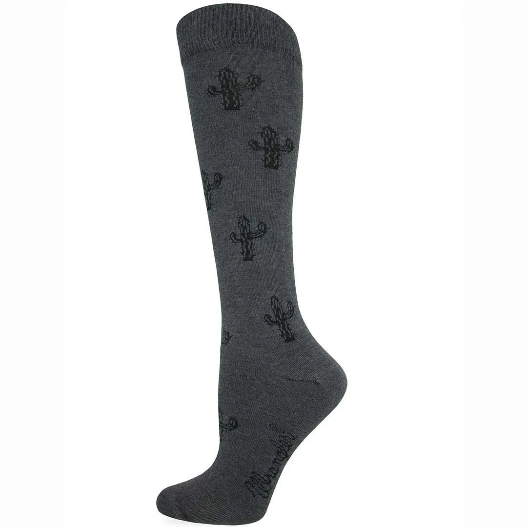 This best seller ladies knee high sock with cactus detail from Wrangler features moisture wicking polyester and stay up leg and toe.